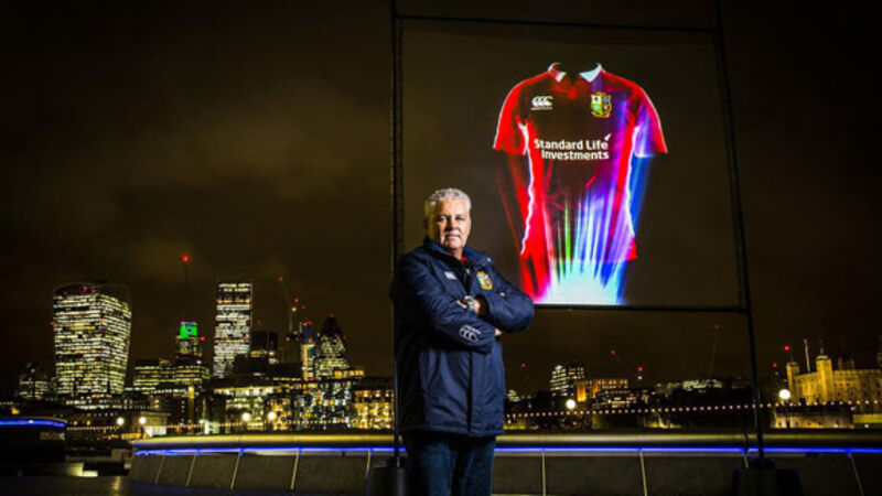 The new British & Irish Lions kit was revealed in spectacular fashion as a giant ‘untouchable’ jersey hologram appeared over London