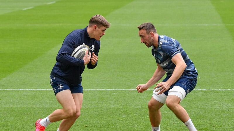 Garry Ringrose, left, and Jack Conan during the Leinster Rugby captains run at the Aviva Stadium in Dublin. Picture: Ramsey Cardy/Sportsfile