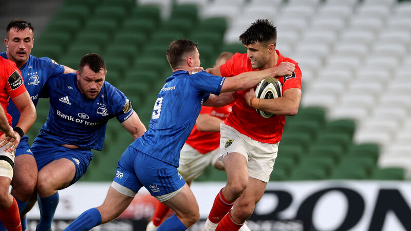 Munster's Conor Murray is tackled by Luke McGrath of Leinster. Murray has been ruled out of Munster's season opener this weekend. Picture: INPHO/Billy Stickland