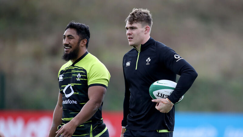 Bundee Aki and Garry Ringrose at Ireland training today. The pair, along with Rob Henshaw and Chris Farrell, are testament to the strength in depth Andy Farrell has to pick from in the centre. Picture:Â INPHO/Dan Sheridan