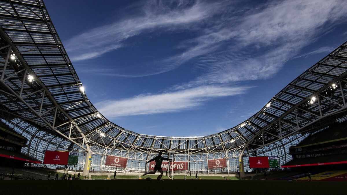 PRACTICE MAKES PERFECT: Johnny Sexton gets in some kicking practice during the Ireland Rugby Captain’s Run at Aviva Stadium, yesterday.