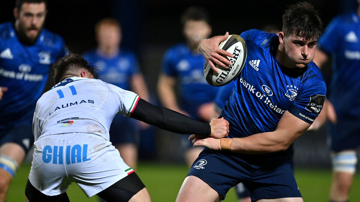 Leinster's Dan Sheehan is tackled by Jamie Elliot of Zebre at the RDS Arena. Photo by Brendan Moran/Sportsfile