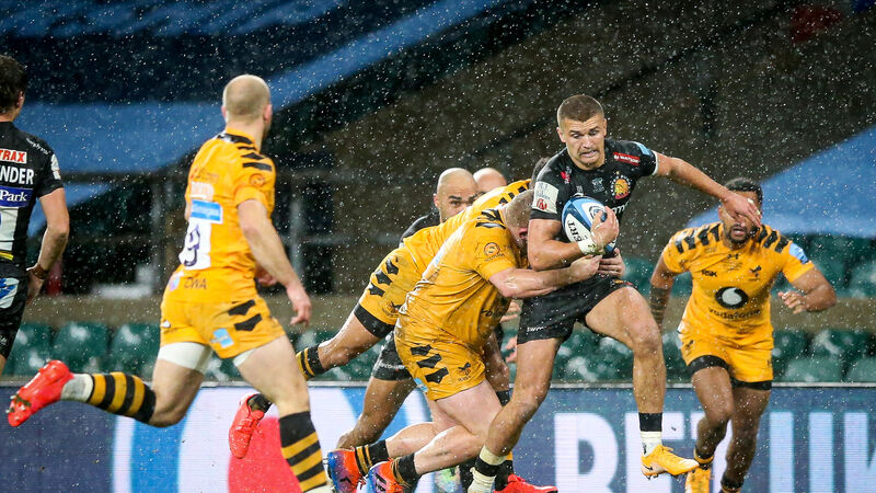 Exeter's Henry Slade makes a break in the Premiership final win over Wasps. Picture:INPHO/Andrew Fosker