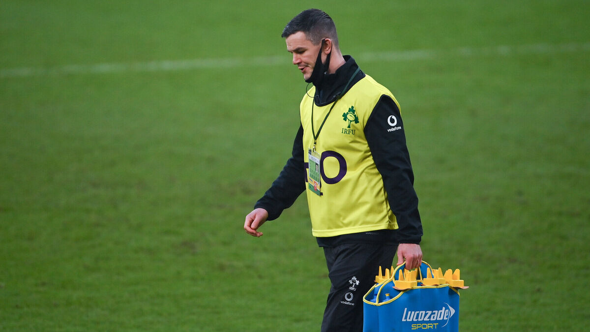 Johnny Sexton acting as water carrier during Ireland's Autumn Nations Cup win over Georgia at the Aviva Stadium. Photo by Ramsey Cardy/Sportsfile