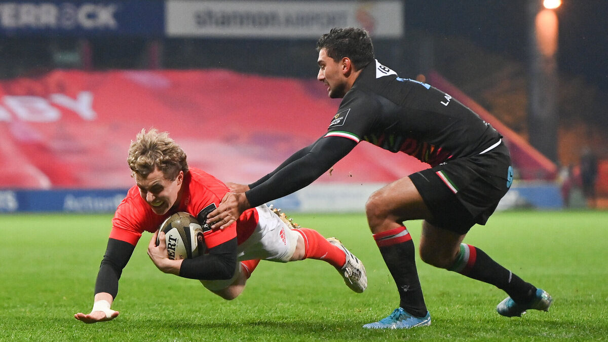 Craig Casey of Munster dives over to score his side's seventh try against Zebre earlier this week. Casey is one of a number of young players who graduated to the senior team this season. Picture: Ramsey Cardy/Sportsfile