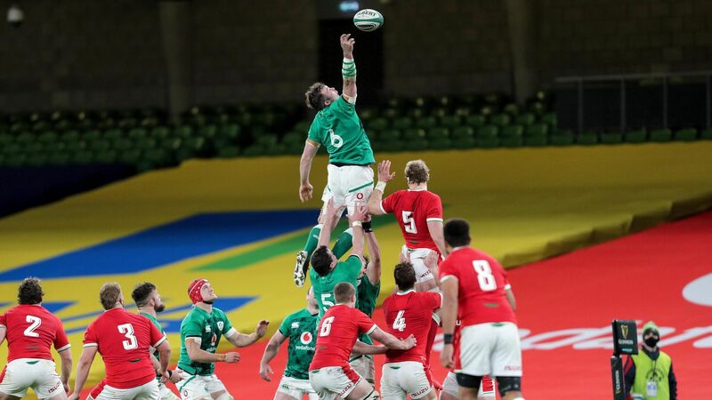 Ireland's Peter O’Mahony and Alun Wyn Jones of Wales contest a line-out during the Nations Cup clash. Picture: INPHO/Laszlo Geczo