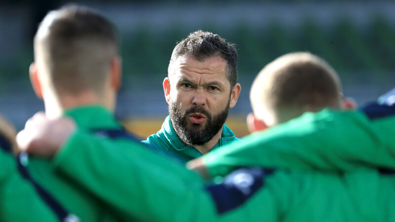 Ireland coach Andy Farrell talking tactics with his squad. ‘We’ve reviewed the Georgia game honestly and truthfully and there’s an appetite in the squad to get it right this weekend,’ says Ireland scrum-half Conor Murray.
