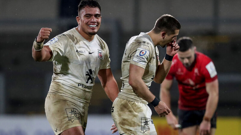 Toulouse's Selevasio Tolofua celebrates with Thomas Ramos at the final whistle. Picture:Â INPHO/Dan Sheridan