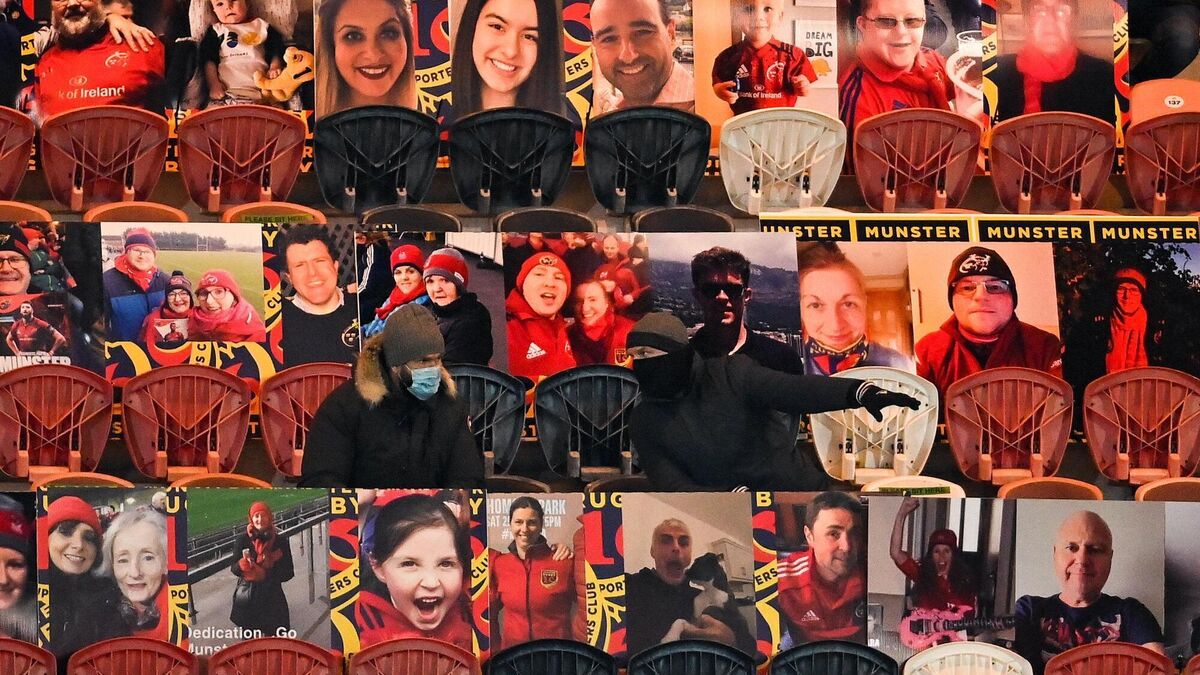 Munster fans watch at home as Leinster visit Thomond Park in Limerick. Photo by Ramsey Cardy/Sportsfile