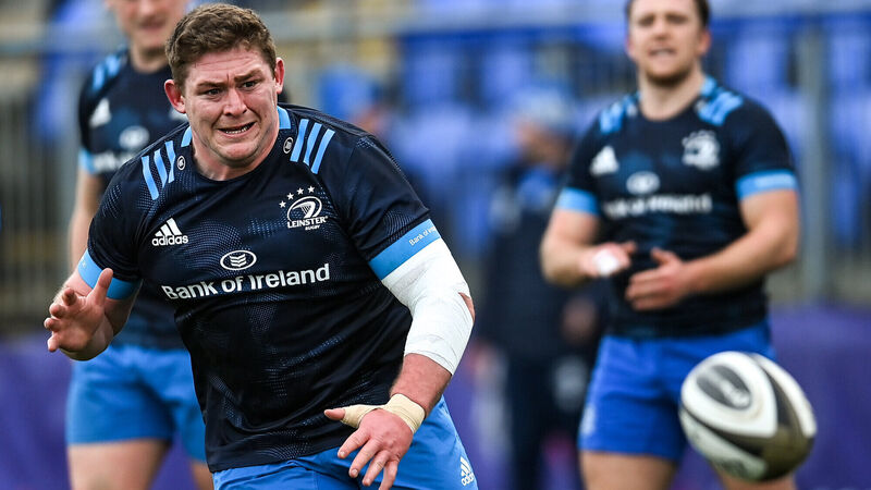 Tadhg Furlong at Leinster Rugby squad training at Energia Park in Dublin yesterday. ‘He looks in fantastic shape,’ says Leinster senior coach Stuart Lancaster.