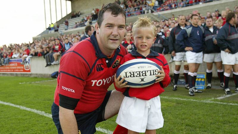 Craig Casey as a Munster mascot with Anthony Foley at Thomond Park in 2005. Picture: INPHO/Billy Stickland