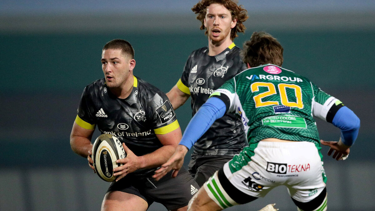 Munster's Dan Goggin in action against Giovanni Pettinelli of Benetton at Stadio Monigo in Treviso. Photo by Roberto Bregani/Sportsfile
