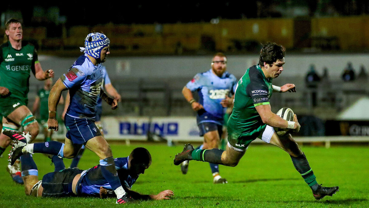 Connacht's Alex Wootton on his way to scoring his second try. Picture:Â INPHO/James Crombie