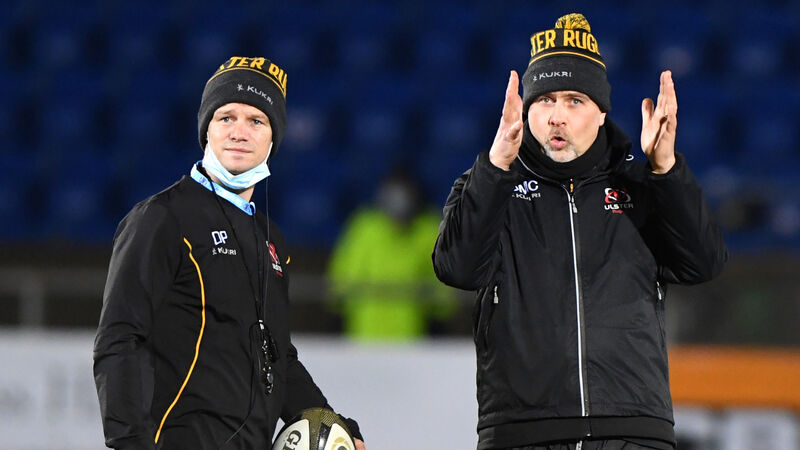 Ulster head coach Dan McFarland and assistant coach Dwayne Peel before the recent clash with Glasgow. Picture:Â INPHO/Craig Watson