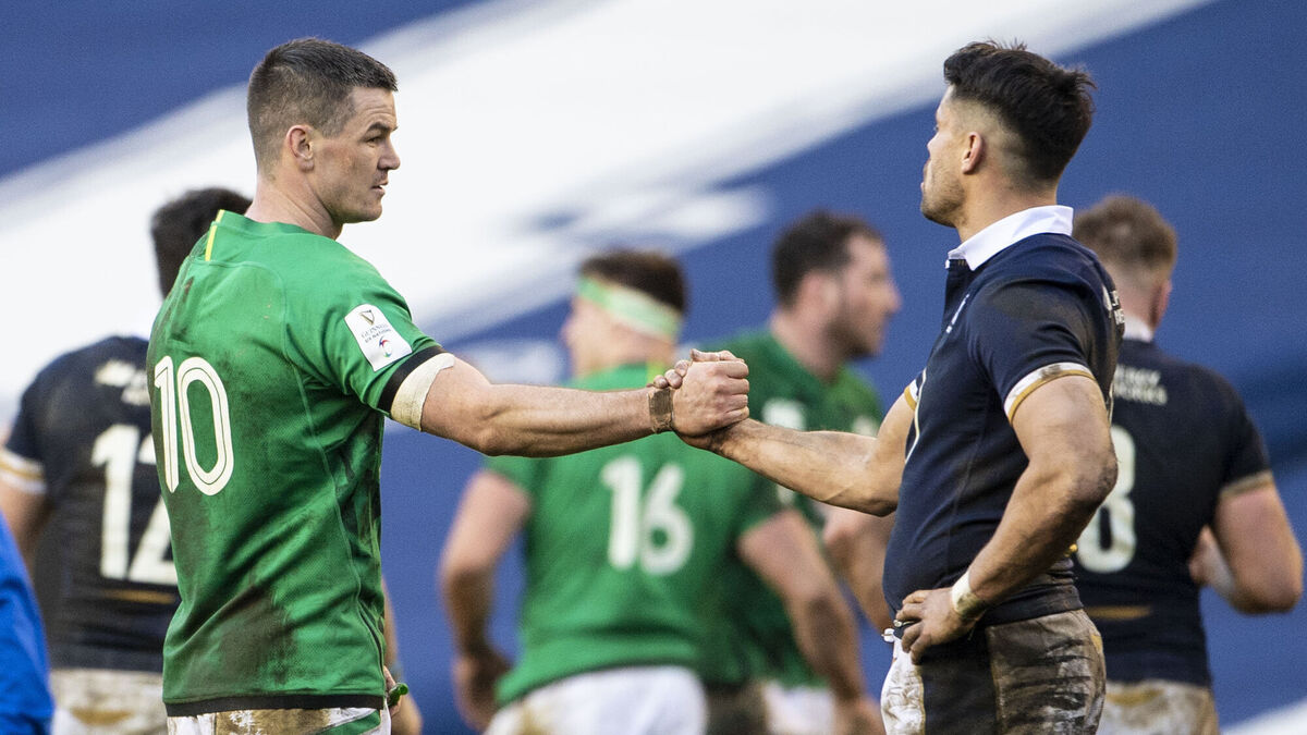 Jonathan Sexton with Sean Maitland of Scotland following the Guinness Six Nations Rugby Championship match. Picture: Paul Devlin/Sportsfile