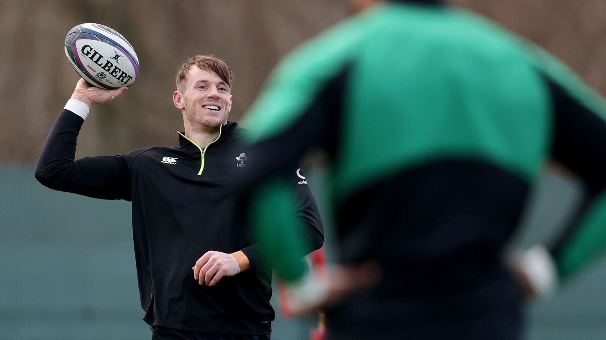 Ryan Baird at Ireland squad training. The Leinster man impressed after coming on as a substitute in Sunday’s Six Nations win over Scotland and the 21-year-old charged down an Ali Price kick in the Scotland 22, which led to the winning penalty kick.