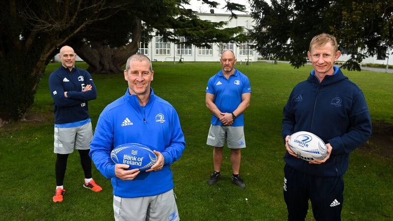 The Leinster coaching team, from left, backs coach Felipe Contepomi, senior coach Stuart Lancaster, scrum coach Robin McBryde and head coach Leo Cullen at Leinster Rugby Headquarters in Dublin. Picture: Ramsey Cardy/Sportsfile