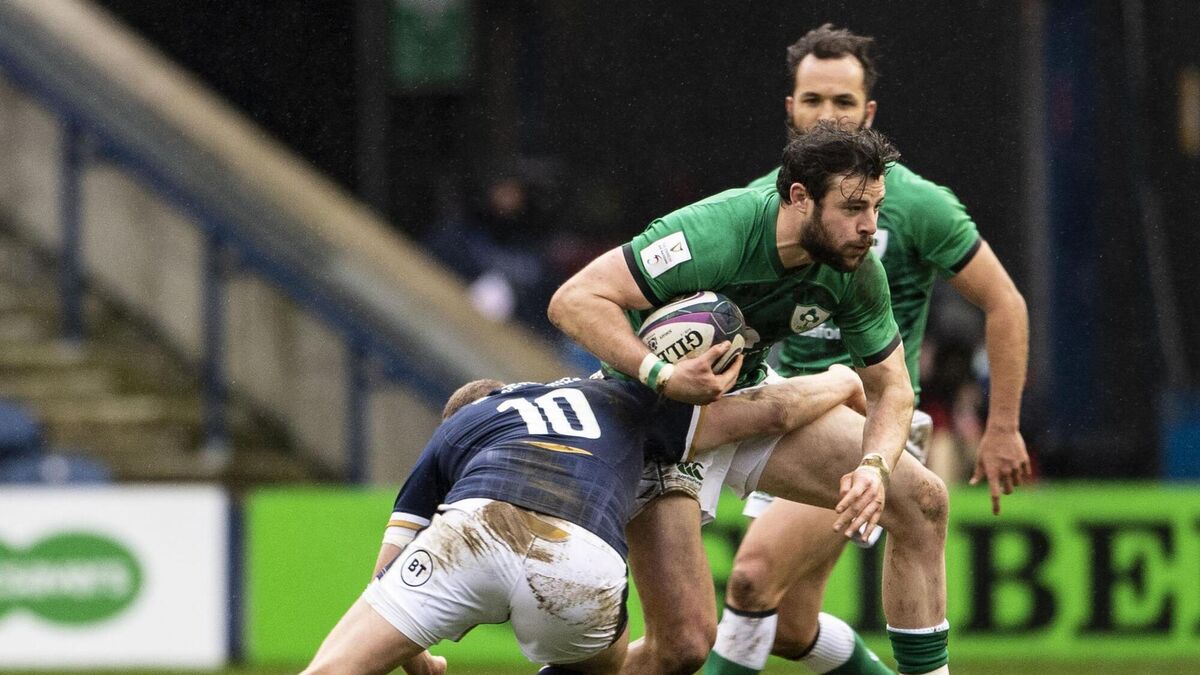 Robbie Henshaw of Ireland is tackled by Finn Russell of Scotland. Picture: Paul Devlin/Sportsfile
