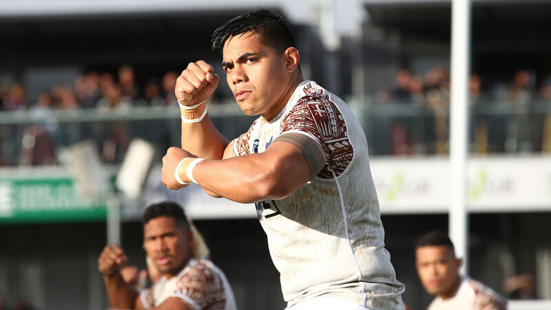 Michael Alaalatoa of Moana Pasifika during the cultural challenge before playing the Maori All Blacks. Picture INPHO/Pool Pictures/Phil Walter