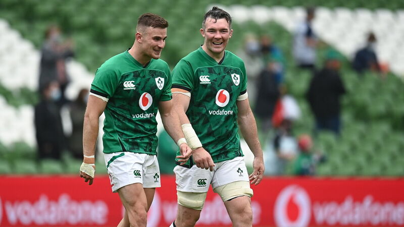 Shane Daly, left, and Peter O'Mahony after Ireland's victory at the Aviva Stadium. Photo by Harry Murphy/Sportsfile
