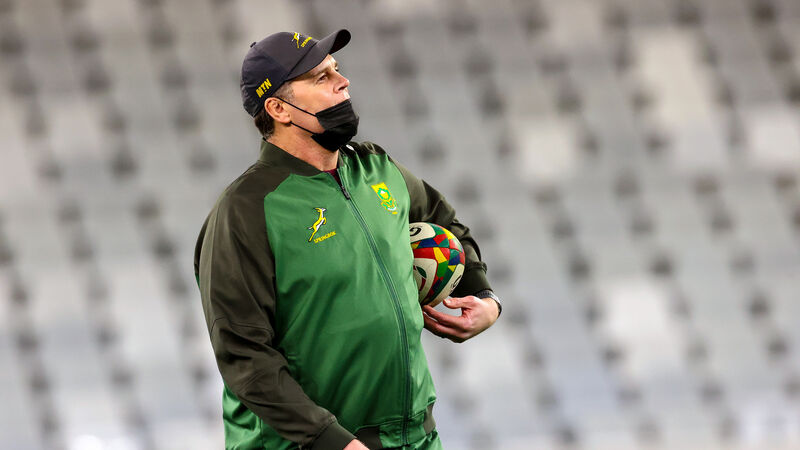 Springboks Director of Rugby Erasmus pointed out some offences he claimed the tourists committed against his players. Picture: INPHO/Billy Stickland