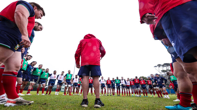 British & Irish Lions head coach Warren Gatland speaks to the team. Picture: INPHO/Billy Stickland