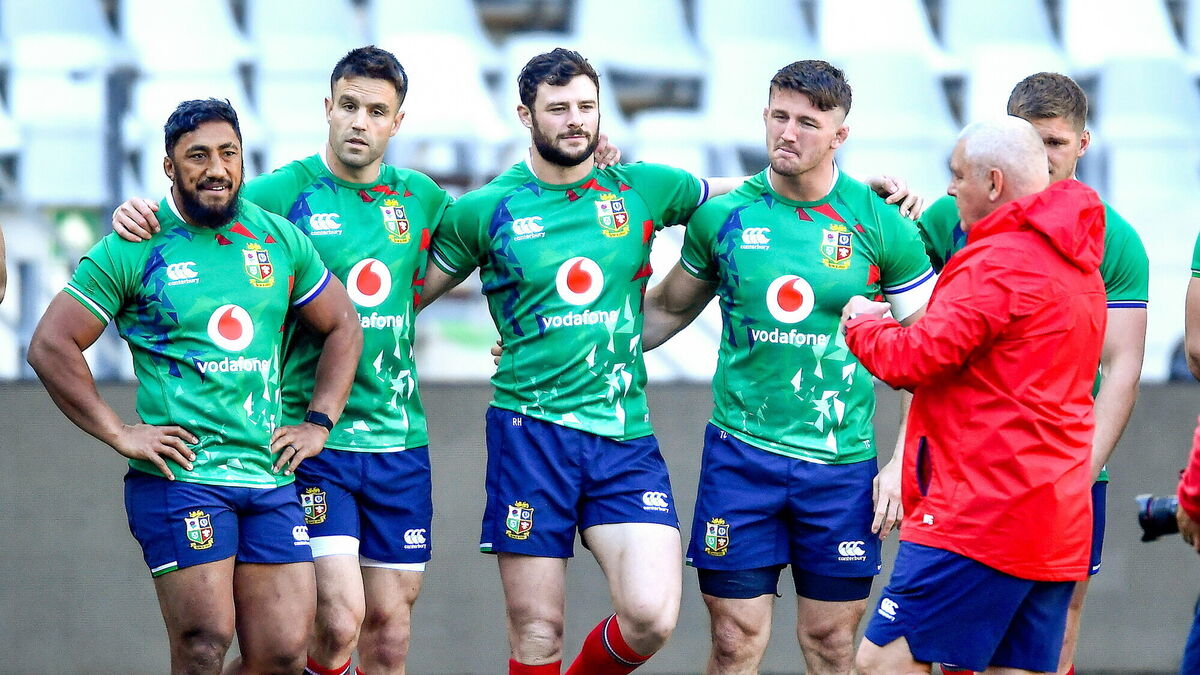 Bundee Aki, left, Conor Murray, Robbie Henshaw and Tom Curry during the Lions Captain's Run at Cape Town Stadium. Picture: Ashley Vlotman/Sportsfile