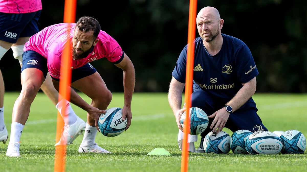 Jamison Gibson-Park with Leinster kitman Jim Bastick. Picture: INPHO/Ben Brady