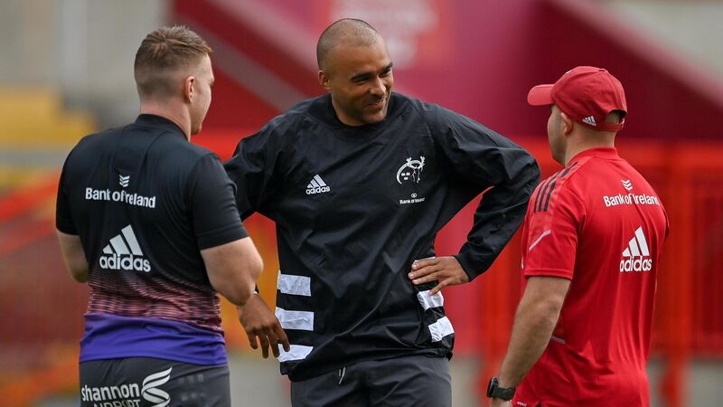 Simon Zebo, centre, with Rory Scannell and defence coach JP Ferreira. Photo by Brendan Moran/Sportsfile