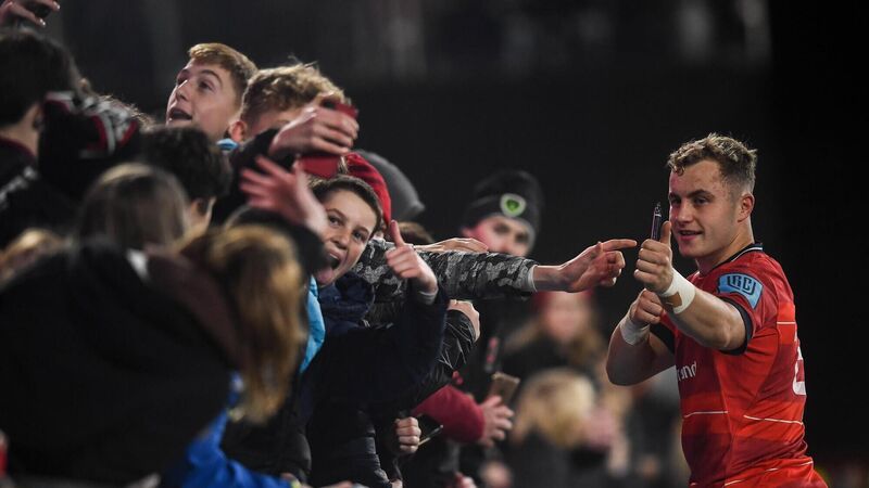 Craig Casey of Munster with supporters after the United Rugby Championship match between Munster and Connacht at Thomond Park. Picture: David Fitzgerald/Sportsfile