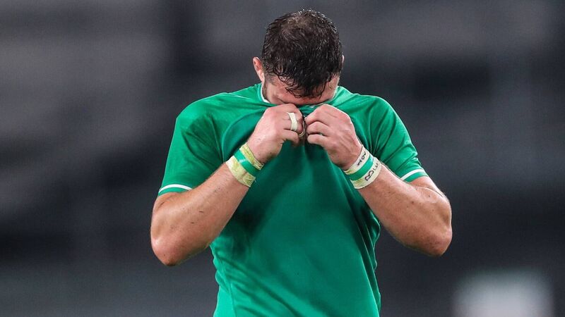 Ireland’s Robbie Henshaw is dejected after Ireland’s defeat to New Zealand in the 2019 World Cup quarter-final in Tokyo.