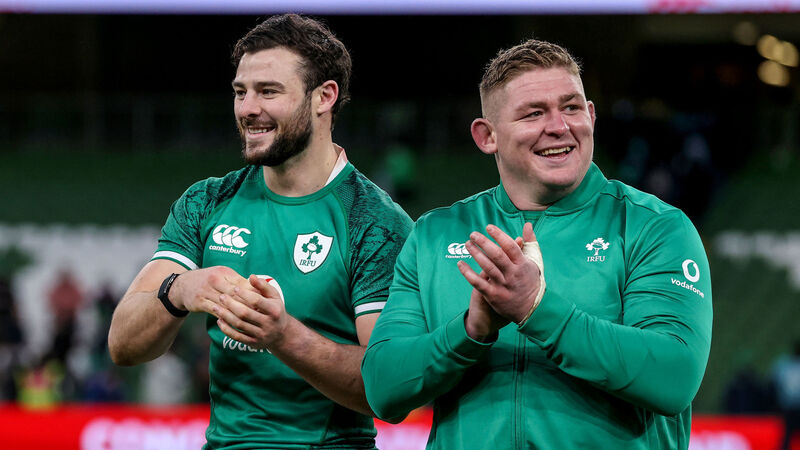 Ireland's Robbie Henshaw and Tadhg Furlong celebrate after beating Argentina. Picture:Â INPHO/Dan Sheridan