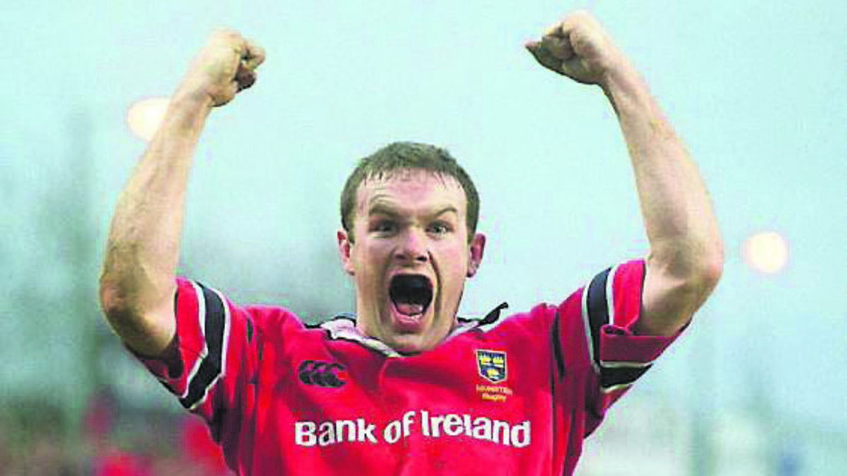 Munster's John Kelly celebrates after scoring his sides 4th try in the last minute of the game against Gloucester in 2003. Picture: Pat Murphy