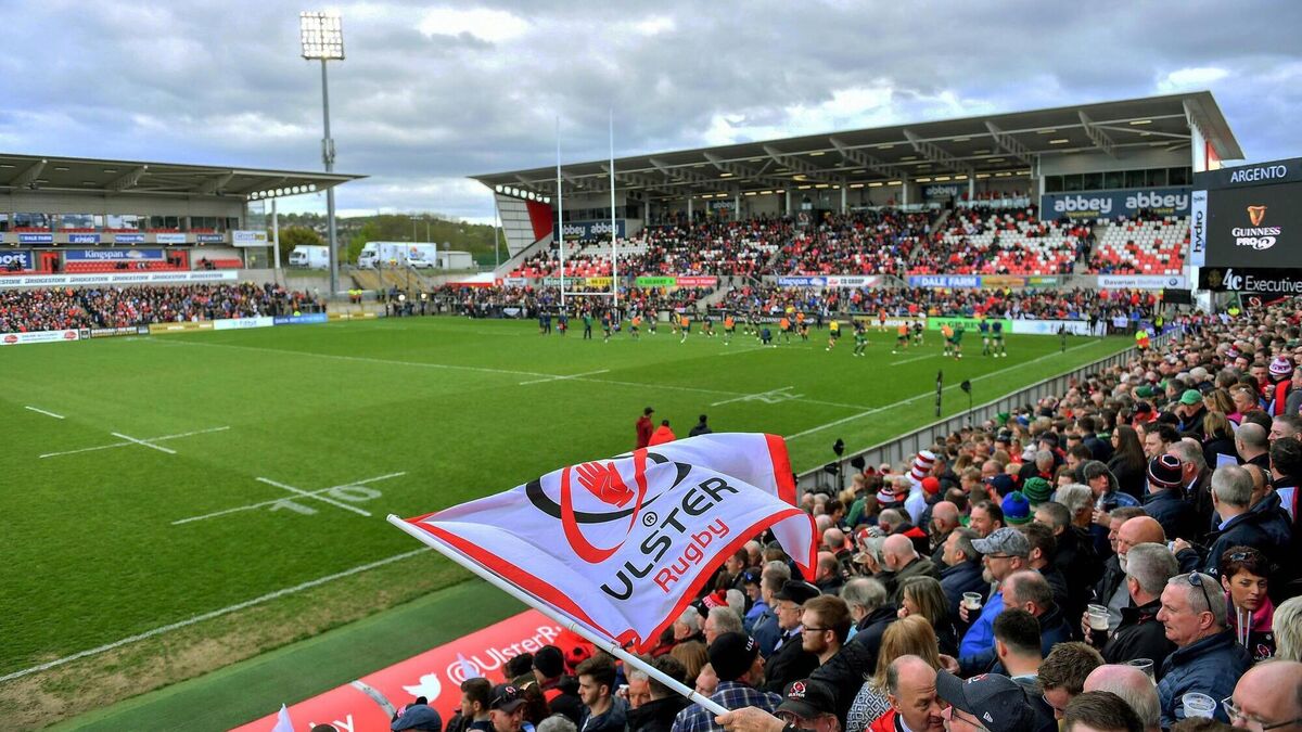 A general view of an Ulster rugby flag waving at Kingspan Stadium. Picture: Brendan Moran/Sportsfile