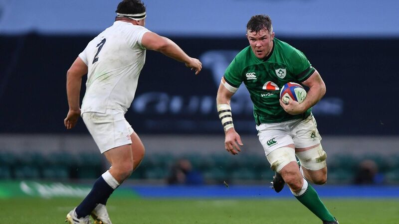 Peter O'Mahony of Ireland runs at Jamie George of England during the England v Ireland Autumn Nations Cup at Twickenham Stadium on November 21, 2020. The pair became close friends as Lions teammates.