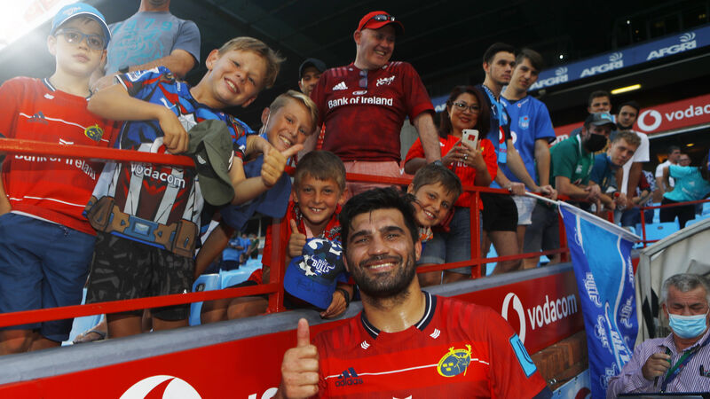 Munster's Damian de Allende with fans after the game