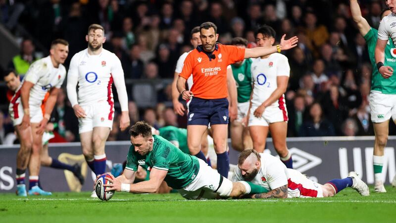Ireland kept their Guinness Six Nations title hopes alive with a first win in England since 2018 as they overcame a defiant 14-man home side and hostile crowd to score a remarkable bonus-point victory.