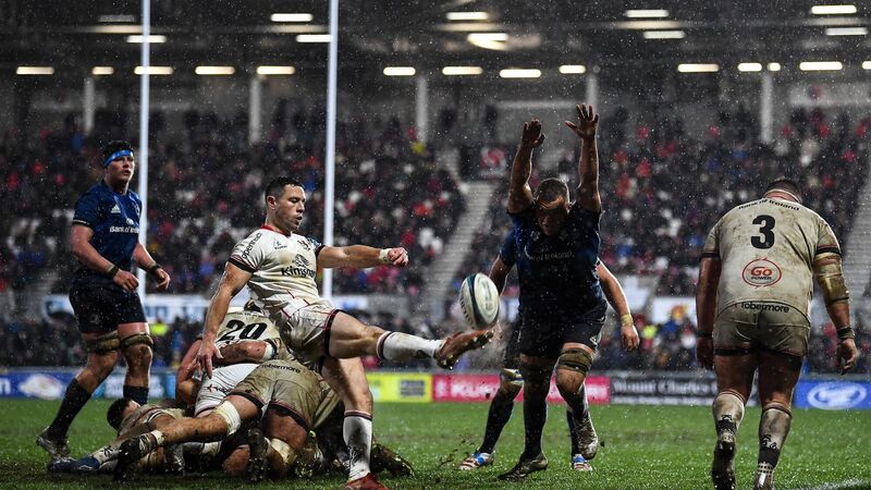 Ulster closed to just one point behind Leinster in the United Rugby Championship standings as they did the double over their provincial rivals with an 18-13 win in dreadful conditions at Kingspan Stadium.