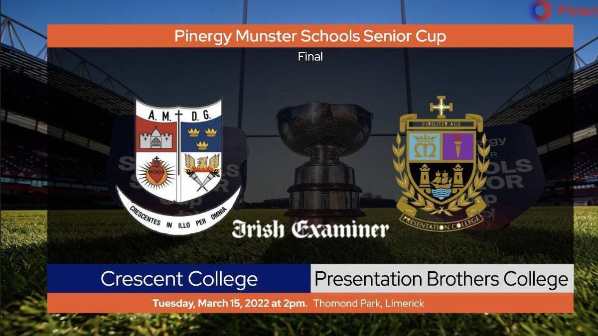 Crescent College Comprehensive of Limerick will play Cork's Presentation Brothers College on Tuesday March 15 at 2pm in the Pinergy Munster Schools Cup final