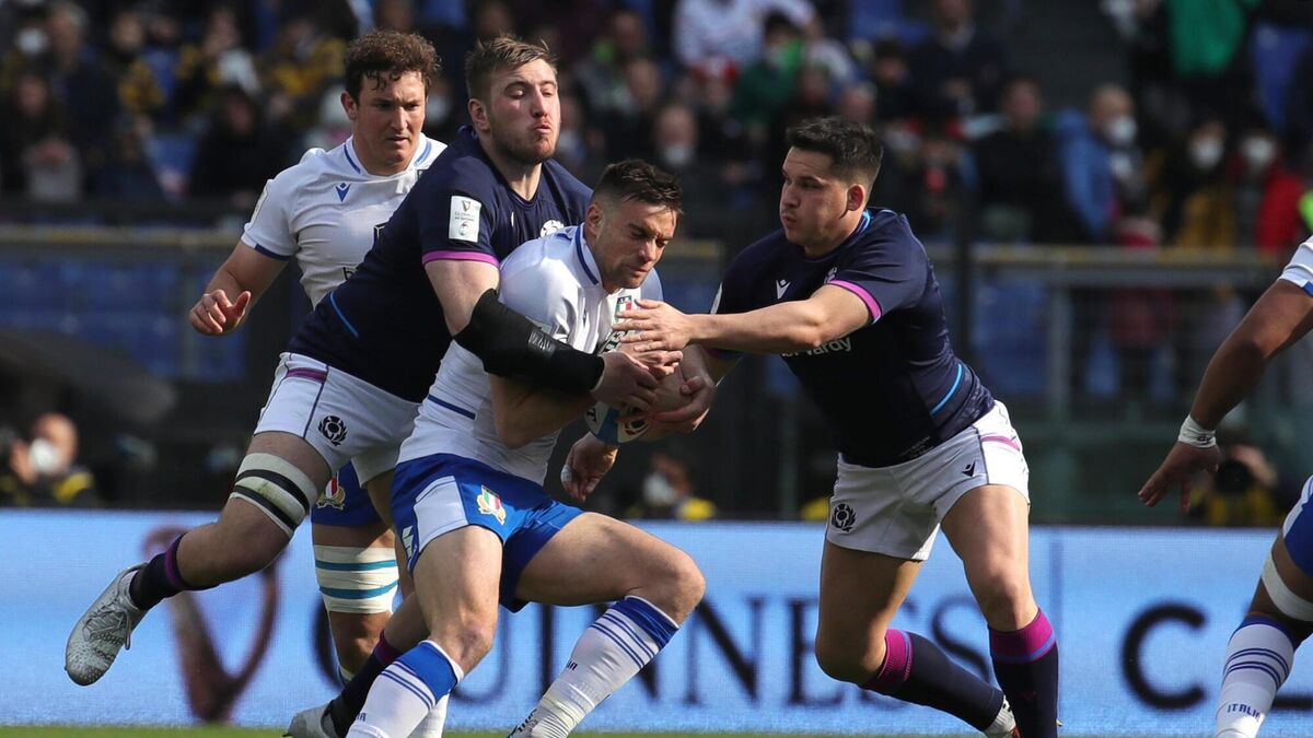 Italy's Edoardo Padovani tackled by Matt Fagerson of Scotland in last weekend's Six Nations ChampionshipÂ