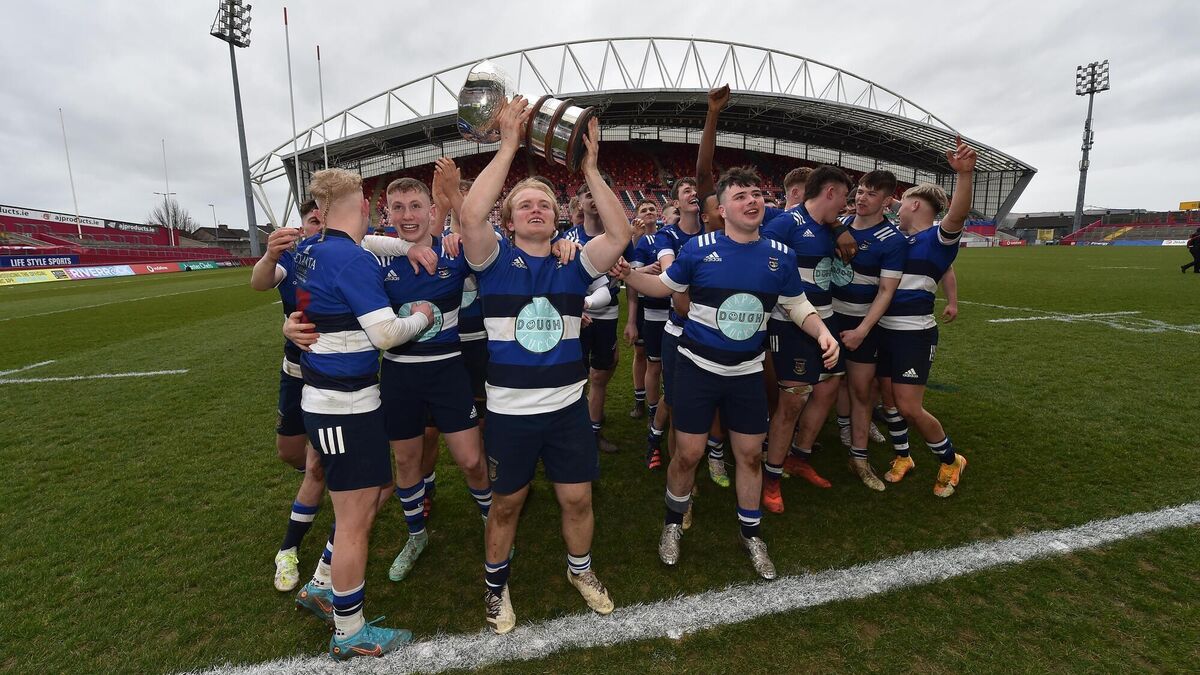 The Limerick school’s captain Conall Henchy lifted the Garrett Fitzgerald Cup to the delight of the massed ranks of the team’s fellow pupils in the stands following a 26-5 victory built on a dominant performance in defence and clinical finishing in attack.