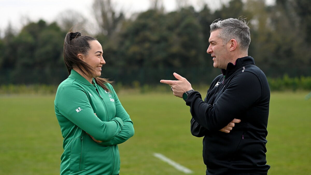 Ireland head coach Greg McWilliams and newly announced captain Nichola Fryday at the IRFU High Performance Centre at the Sport Ireland Campus in Dublin. Picture: Ramsey Cardy/Sportsfile