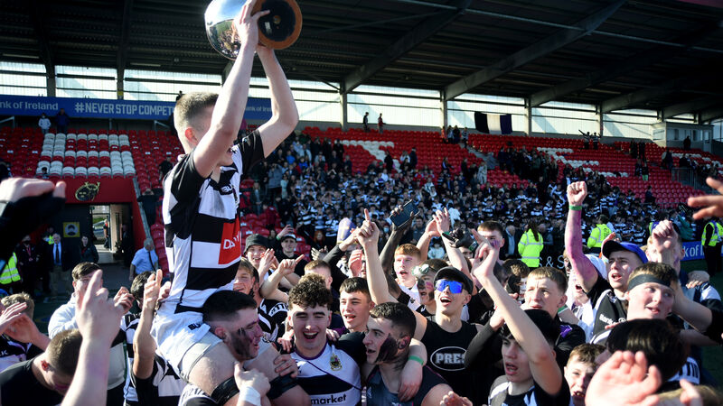 Raise your hands: Captain Rory Maloney holds the cup for Presentation Brothers College after their win against Christians at Musgrave Park. Pic: Larry Cummins
