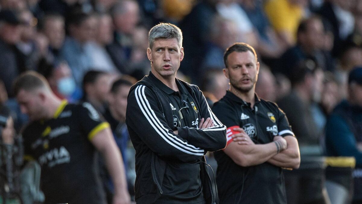 PHEW: La Rochelle's coach Ronan O'Gara and assistant Benjamin Boboul during Saturday's Top 14 win over his old club Racing 92 at the Marcel-Deflandre stadium