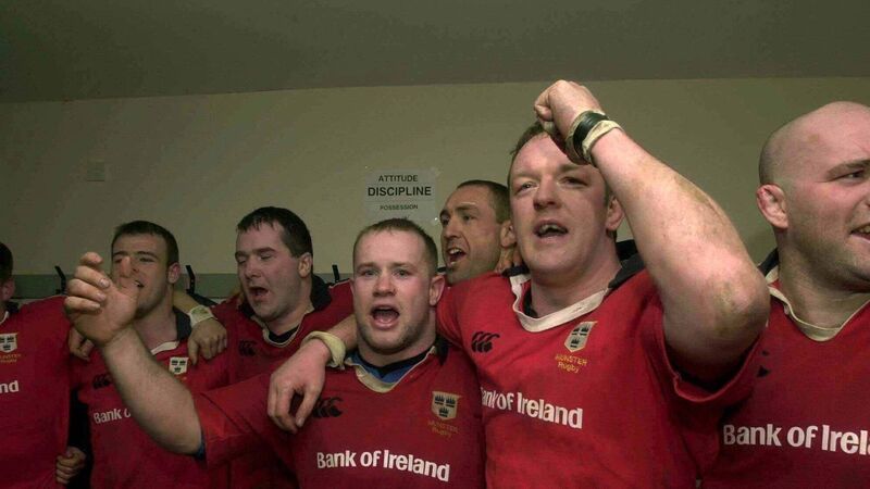 WORDS OF WISDOM: Munster players Frankie Sheahan and Mick Galwey celebrate following the Heineken Cup Pool 4 Round 5 match between Newport and Munster at Rodney Parade in Newport, Wales. Photo by Matt Browne/Sportsfile