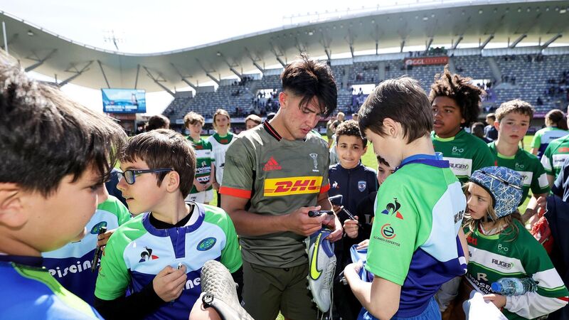 Star power:Â Harlequins' Marcus Smith signs autographs after last week's game against Montpellier. Photo: INPHO/Laszlo Geczo