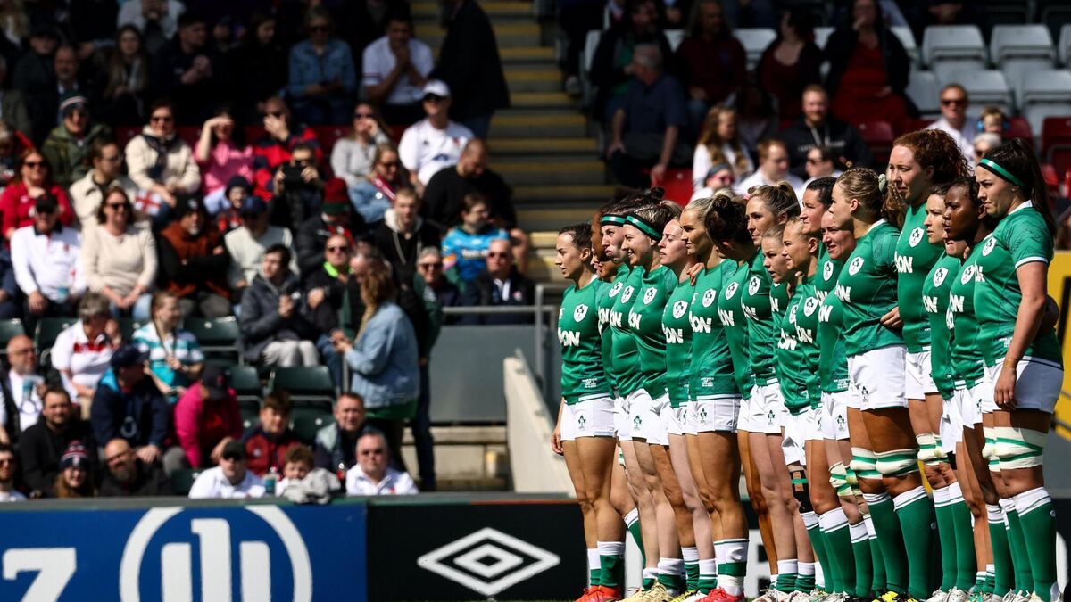 Ireland line up before the TikTok Women's Six Nations Rugby Championship match against England at Mattioli Woods Welford Road Stadium