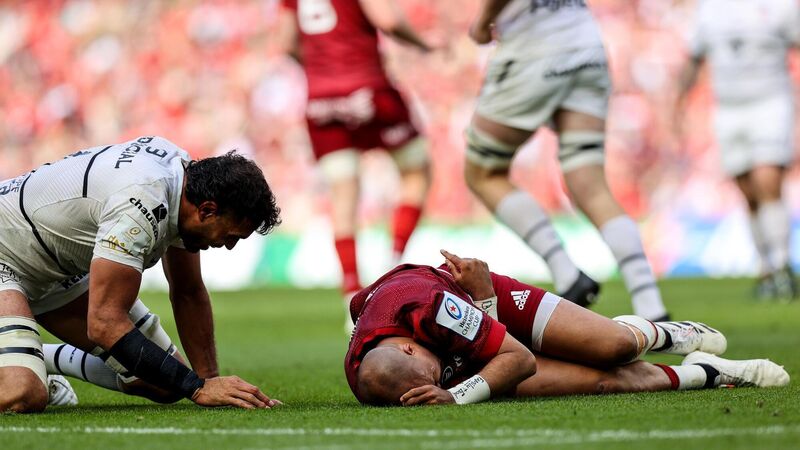 Flash point: Munster's Simon Zebo goes down injured after a delayed tackle from Rory Arnold of Toulouse for which he later received a yellow card