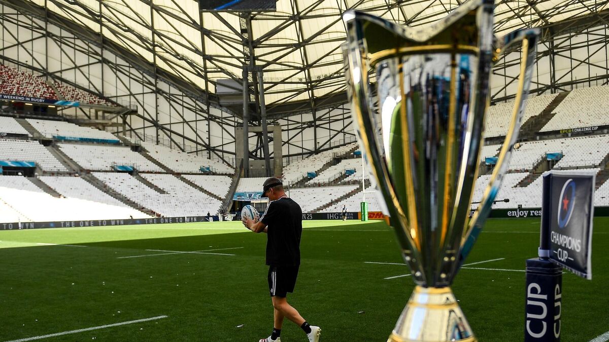27 May 2022; Head coach Ronan O'Gara walks past the trophy during the La Rochelle Captain's Run at Stade Velodrome in Marseille, France. Photo by Harry Murphy/Sportsfile