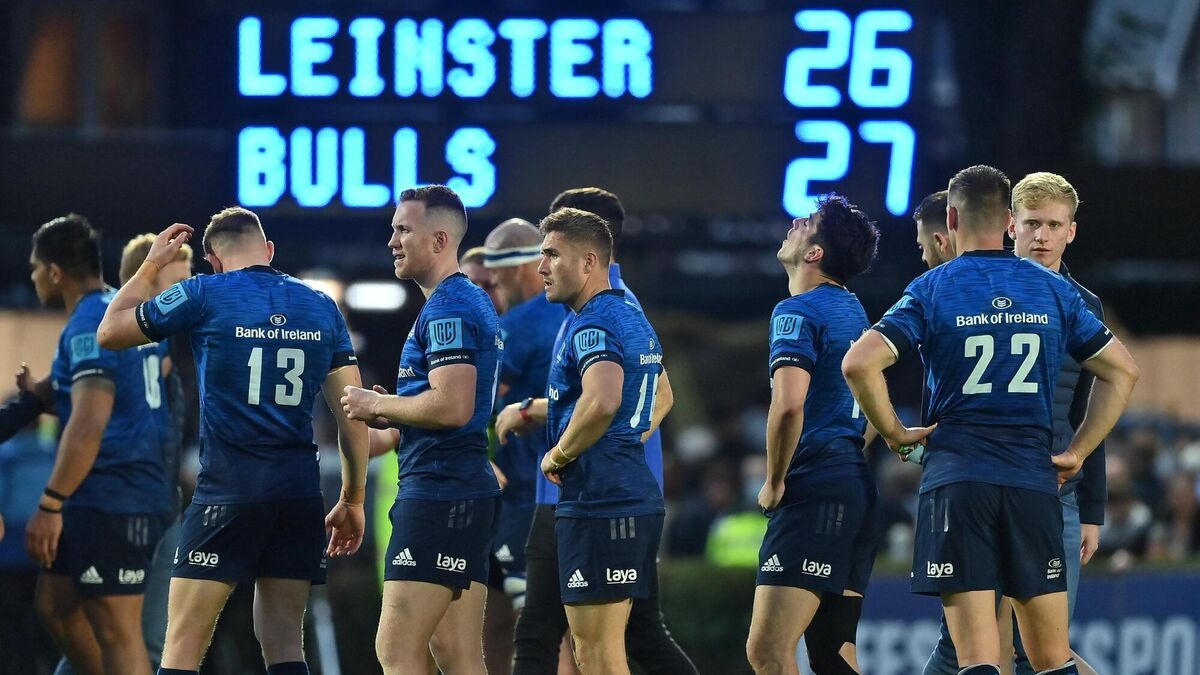 Leinster players, including Rory O'Loughlin and Jordan Larmour, after the United Rugby Championship Semi-Final defeat to the Vodacom Bulls at the RDS last weekend. Leinster will be second seeds in the Champions Cup draw later this month. Picture: Brendan Moran/Sportsfile